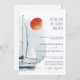 Sailing In The Future Together QR Code Faire-part de mariage nautique... Notre faire-part de mariage à thème nautique dispose d'un voilier couleur flottant sous un soleil orange attirant l'attention sur votre texte d'invitation dans un script de calligraphie moderne combiné à la typographie classique serif et sans serif. La citation inspirante "Sailing into the Future Together" donne le thème de votre cérémonie de mariage sincère. Au verso de l'invitation se trouve votre code QR de site Web mariage ainsi que l'URL du site Web permettant à vos invités de facilement RSVP en ligne et de voir tous les détails normalement envoyés dans un paquet mariage. L'exemple de code QR et tous les exemples de texte (mis à part les éléments de calligraphie) peuvent être facilement révisés avec vos propres informations sur le modèle de personnalisation.