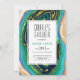 Vert, bleu et pêche agate tranche avec feuille d'or veines geode moderne été mariage couples douche invitation. Un design de mariage moderne et élégant avec une tranche d'agate et un cadre blanc avec votre libellé.