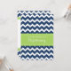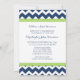 Le bleu marine foncé moderne et coloré et les zigzags lumineux de chevron de vert de chaux barre l'invitation de baptême pour le garçon.
