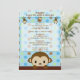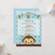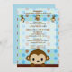 Comporte une petite fille mignonne que le singe jetant un coup d'oeil au-dessus de lui est rail de huche. Trois singes adorables supplémentaires pendent par espièglerie en haut de la bannière de mots (personnalisez avec le nom du bébé ou quelque message vous voudriez). Caractéristiques : POIS et BLEU TURQUOISE, BRUN, thème de couleur VERTE de CHAUX. Perfectionnez pour un GARÇON !