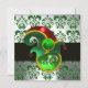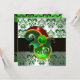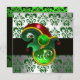 INVITATION VERT DAMASSÉ , CHAPEAU DE LUTIN FÊTE DE LA SAINT-P