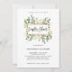 Cette magnifique invitation à la douche en couple mariage de Noël comprend des vacances vertes et feuilles avec des feuilles en faux or et des baies rouges sèches, et un cadre en or central sur un arrière - plan blanc moderne. La typographie de script "couple douche" est très tendance.