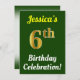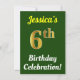 Invitation Vert, Faux Or 6e anniversaire Célébration + Nom