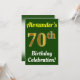 Invitation Vert, Faux Or 70e anniversaire Célébration + Nom