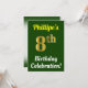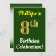 Invitation Vert, Faux Or 8e anniversaire Célébration + Nom