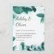 Présentant notre magnifique faire-part de mariage vert et blanc, avec une bordure botanique de feuilles verts. Cette invitation est parfaite pour les couples qui veulent célébrer leur amour avec une touche de nature et d'élégance. Le design d'ombre magnifique, passant du vert au blanc, crée un look unique et captivant qui rendra vos invités enthousiastes à assister à votre journée spéciale. La frontière botanique complexe des feuilles verts crée une sensation naturelle et intemporelle, en parfaite harmonie avec le design sombre. La majorité du texte est dans un gris foncé élégant, ajoutant sophistication et élégance à l'invitation. Les noms du couple sont surlignés dans un vert foncé, assortis à la verdure à la frontière et ajoutant une touche personnelle à l'invitation. Cette invitation conviendra parfaitement aux couples qui souhaitent garder leur thème mariage simple mais élégant. Le design botanique ravira vos invités et leur donnera un aperçu du beau mariage qui les attend. L'invitation est également parfaite pour les couples qui ont choisi le vert comme couleur mariage principale, car il complète parfaitement le thème. L'invitation est faite avec des matériaux de haute qualité et imprimé avec le plus grand soin pour s'assurer qu'il a l'air étonnant et se démarque. La taille est standard, ce qui le rend facile à manipuler et à envoyer. Avec cette invitation, vous pouvez être sûr que vos invités seront impressionnés et heureux d'assister à votre journée spéciale. En résumé, notre faire-part de mariage vert et blanc avec une bordure botanique de feuilles verts est parfait pour les couples qui apprécient la nature, la simplicité et l'élégance. Il est magnifiquement conçu avec un effet sombre et des couleurs choisies avec soin, ce qui en fait une invitation parfaite pour les couples qui veulent donner le ton pour une belle fête mariage.