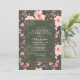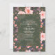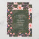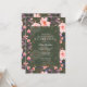 Invitations de fête d'anniversaire élégantes et vintages, avec un motif floral rose vif sur un arrière - plan vert foncé. Le texte est entièrement modifiable et peut être modifié à n'importe quel événement.