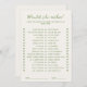 Carte de jeu "Voudrait-elle plutôt ?", ironique et fantaisiste, avec une police verte manuscrite et un texte entièrement personnalisable. La carte de jeu téléchargeable est disponible dans un jeu de couleurs neutres de vert et d'écru.