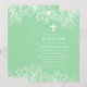 Invitation Vert menthe et floral blanc Baptême