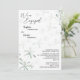 Ce blanc verdoyant moderne nous sommes engagés design d'invitation fiançailles dispose de mélange facile et de correspondre styles coordonnés en noir et blanc avec des éléments de verdure délicats ajoutant gracieusement floraison autour simple sophistiquée typographie et belle script de calligraphie minimale. L'eucalyptus à l'aquarelle et d'autres feuilles botaniques s'arment magnifiquement tout le long, avec un teint émeraude foncé qui s'estompe dans un effet sombre pour un vert menthe clair - pour ajouter juste assez d'une touche classe de nature rustique à un décor contemporain neutre. Cette magnifique collection créerait un air d'élégance poli pour votre mariage de rêve formel ou décontracté ou autre événement spécial. Comme pour tous nos designs, si vous avez des questions ou des demandes spéciales, contactez-nous.
