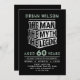La typographie "L'homme le mythe la légende" en vert sauge, noir et blanc, personnalisait votre nom et les détails de votre fête. Grandes invitations d'anniversaire pour adultes pour 30e, 40e, 50e, 60e, 70e, 80e, 90e ou toute autre fête d'anniversaire d'âge, et autres jours spéciaux.