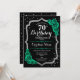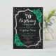 Invitation à la fête du 70e anniversaire. Elégant design floral vert émeraude avec faux parties scintillant argent et rose. Comprend des polices de caractères et des confettis stylisés. Parfait pour une célébration anniversaire féminine glamour. Peut être customisé pour n'importe quel âge ! Invitations Zazzle imprimées ou téléchargement instantané modèle imprimable numérique.