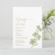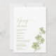 le design avant montre des fleurs vert sauge sur le côté droit et des faire-part de mariage en vert olive sur le côté gauche. ce design élégant unique est parfait pour votre mariage.