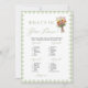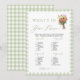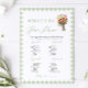 Fraîche, amusante et toujours un favori de la foule 🌿✨—ce jeu de Baby Shower "What's In Your Purse" (Qu'y a-t-il dans votre sac ?) de couleur vert sauge est un moyen ludique de faire rire et de faire participer les invités. Conçu avec des tons de vert sauge doux et un look moderne et épuré, ce jeu s'intègre parfaitement dans les Baby Shower sur le thème de jardin, de marché fermier ou de "Fresh Off the Market" (fraîchement sortie du marché) 💐🤍. Les invités adoreront vérifier leurs sacs pour marquer des points pour les objets quotidiens et drôles, ce qui en fait un brise-glace facile qui suscite la conversation et une saine concurrence. Simple à jouer et parfait pour tous les âges, ce jeu éditable ajoute de l'énergie, des rires et un charme fraîche