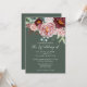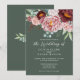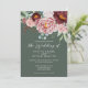 Un design aquarelle élégant avec de grandes pivoines et roses dans des nuances de rose poudré avec une verdure d'eucalyptus magnifique sur un fond vert sauge. Le dos de la carte a le fond vert sauge avec un petit arrangement floral au centre. Cette belle invitation fait partie d'une suite de mariage assortie qui peut être entièrement personnalisée.