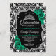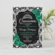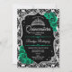 Invitation Verte Argent Noir Damas Élégante Quinceanera