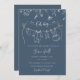 C'est une carte d'invitation au baby shower minimaliste, avec des vêtements de bébé et un ours en peluche accroché à un fil de linge, orné d'illustrations florales délicates en haut, sur un arrière - plan bleu foncé. Le texte "Oh boy" est écrit avec élégance. Tous les éléments sont dessinés à la main. Si vous avez besoin d'un autre produit ou d'une autre personnalisation, veuillez me contacter.