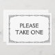 Panneau de mariage élégant et simple de style art déco noir et blanc "Veuillez en prendre un", personnalisé avec votre propre texte.