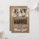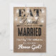 "Je ne peux pas dire "oui, je le veux" sans toi!" carte moderne et plate de fille de fleurs de campagne rustique avec un fond à effet toile de jute marron rustique, élégant pot mason avec des guirlandes lumineuses, les mots "MANGEZ, BUVEZ ET SOYEZ MARIÉS" et votre texte de fille de fleurs.