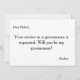 Cette carte d'invitation 5" x 7" "Votre présence est souhaitée en tant que témoin ou garçon d'honneur" est magnifique. Elle est idéale pour le marié. Vous avez trouvé votre femme, mais vous avez encore besoin de vos amis. Envoyez-leur cette carte pour garçons d'honneur. Si vous envisagez de demander à quelqu'un d'être votre garçon d'honneur pour votre futur mariage, alors pourquoi ne pas choisir cette carte de garçon d'honneur. Cette carte d'invitation personnalisée fera que votre ami, frère, cousin, neveu, fils ou qui que vous choisissiez se sentira spécial. Cette invitation est facilement personnalisable en cliquant sur le bouton "Personnaliser" sous l'image, où vous pourrez modifier le texte, la police et la taille. Vous pouvez inviter vos meilleurs amis avec style avec ces invitations élégantes. Elle convient au témoin ou aux garçons d'h