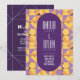 Avec ses motifs géométriques dans les tons apaisants de violet, d'orange et de jaune, ce design apporte une touche sophistiquée et nostalgique à votre journée spéciale. Parfait pour les couples qui cherchent à capturer l'essence de la chute avec une ambiance élégante et unique. Facile à personnaliser et idéal pour n'importe quel mariage d'automne, ce modèle apportera chaleur et élégance à votre célébration.