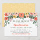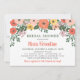 Une invitation de salle de réception de mariage joyeuse et colorée avec des fleurs peintes en gras en corail, orange, pêche et jaune avec une verdure profonde et luxuriante qui cascade sur le dessus. Le style floral d'art folklorique animé se marie avec un script de calligraphie corail et un texte serif vert pour un look chaud et accueillant sur un fond blanc propre. Également un excellent choix pour une célébration de déjeuner de mariage. Tout le texte est entièrement modifiable.