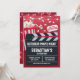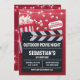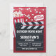 Cette invitation de fête d'anniversaire de cinéma en plein air comprend un clapperboard, un seau popcorn, des lampes à cordes et un billet d'entrée. L'arrière de l'invitation comporte des lumières à cordes brillantes sur un arrière - plan rouge. Ce design est parfait pour une soirée jardin en plein air ou un événement au cinéma. Cette conception convient à tout sexe ou âge. Vous pouvez customiser tous les détails de votre événement. Voir toute la collection correspondante !