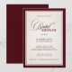 Cette invitation de douche de mariée bordeaux et ivoire présente une mise en page minimaliste raffinée encadrée par une bordure marron riche et une typographie script élégante. Conçue pour refléter une sophistication intemporelle, ce modèle de papeterie classique allie le charme de l'argent ancien à la simplicité moderne.