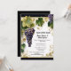 Une belle aquarelle illustrant des feuilles de raisins et des grappes de raisins qui forment une bordure autour de modèles de texte noir pour votre libellé de couleur. Les raisins semblent être 3 dimensions et les bords supérieur et inférieur de l'invitation ont une bordure horizontale noire. Le graphique est placé sur un arrière - plan blanc foncé qui rend l'oeuvre d'art pop. Des modèles supplémentaires apparaissent à l'arrière pour plus d'informations aux clients et à la famille. Supprimez simplement le libellé si ce n'est pas nécessaire. Ce design est idéal pour un thème toscan / italien de vignoble ou de vignoble ; un décontracté midi ou brunch en plein air ou un mariage de style boho.