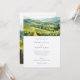 Commencez votre voyage jusqu'au mariage avec le "Faire-part de mariage Vignoble enchanté", magnifiquement illustré avec une vue aquarelle qui fait écho aux paysages vallonnés de la Napa Valley. Cette invitation est une oeuvre d'art, avec une palette de couleurs harmonieuses qui comprennent le vert d'olive, l'or de blé, et les notes les plus douces de lavande, reflétant la beauté naturelle d'un vignoble baigné par la lumière du soleil. Des cyprès majestueux et des montagnes lointaines ajoutent profondeur et grandeur à la scène, invitant vos invités à un événement entouré par la splendeur de la nature. L'élégante façade coule à travers la carte, suggérant une journée de joie et d'élégance. Avec une bordure blanche sophistiquée et une touche de gris doux pour le texte, cette carte est le faire-part parfait pour un couple dont l'histoire d'amour est aussi intemporelle que les vignobles eux-mêmes.