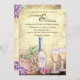Le vignoble romantique All In One faire-part de mariage avec bouteille de vin, verres et raisins sur un arrière - plan de style vintage. Ajoutez tous les détails de votre mariage à l'arrière de cette invitation. -