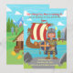 Célébrez l'anniversaire de votre petit Viking avec cette invitation colorée ! Il comprend un Viking boy avec un casque à cornes, un bouclier en bois et une hache. Derrière lui, il y a un longship viking. Cette invitation pour la fête d'anniversaire de garçon est facilement customisée pour votre événement en ajoutant vos détails. Au fond de cette invitation, il y a un paysage scandinave et une maison viking au toit de chaume décorée d'un crâne et de têtes de dragon. A l'avant, il y a une pancarte qui dit PARTY, le animal de compagnie en laine du garçon, et les ballons jaunes. Idéal pour une fête d'anniversaire sur le thème Viking !