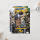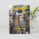 Deux guerriers viking barbares portant des casques cornés et du cuir avec des pantalons et des sommets en fourrure et en métal se tiennent face à vous. Ils ont tous deux de longues barbes et sont encadrés par une maison de village dans l'arrière - plan. Le dos a deux autres guerriers nordiques qui marchent à travers le village. Les modèles de texte jaune moutarde gras apparaissent à la fois devant et arrière pour votre libellé personnalisé. Ils sont idéaux pour "viking à thème fête d'anniversaire" et conviennent aussi bien aux adultes qu'aux enfants, qu'il s'agisse d'hommes, de femmes, de garçons ou de filles.
