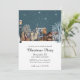 Cette invitation personnalisée pour les fêtes ou pour un party de Noël présente une illustration cosy de style aquarelle. Une image d'un petit village d'hiver la nuit est imprimée sur la partie centrale. Un lampadaire éclairé est représenté sur la gauche, et la neige qui tombe doucement recouvre les maisons de la ville.