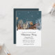 Invitation Village d'hiver cosy la nuit sous la neige qui tom