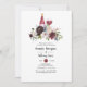 Fleurs de pivoine et bébé eucalyptus vin feuille dégustation couples invitation avec accents de bordeaux, prune, bleu poussiéreux et rose roux.