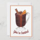 L'invitation présente une illustration originale d'une tasse de vin chaud avec des étoiles d'anis, de l'orange et des bâtons de cannelle. Personnalisez-la simplement avec vos informations pour une fête de pendaison de crémaillère, une maison ouverte, une fête de fin d'année ou une invitation de bienvenue unique.