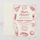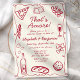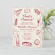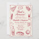 De style rétro, le design de cette fête, de style fantaisiste et fantaisiste, présente une couleur rouge vif classique, un cadre ondulé ludique et des illustrations de la cuisine italienne. Associé à d'élégantes polices de caractères à la main, ce design est parfait pour ajouter une touche de vintage allure à votre événement. Idéal pour des dîners de répétition, des douches pour couple ou des douches nuptiales, surtout pour ceux qui ont pour thème la pizza ou les pâtes.