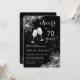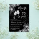 Salue À 70 Ans ! Moderne et élégant, il présente d'élégantes fleurs argentées, des verres à champagne, des polices de caractères et des confettis. Personnalisez avec vos propres détails. Peut être customisé à n'importe quel âge.