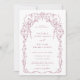 Elégant Cadre Rouge Vin Inspiré Victorien, faire-part de mariage. Caractéristiques modèles, typographie tendance avec détails modèle sur le dos.
