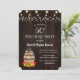 Chute Foliage Vin Baril String Lights design de carte avec un tonneau de vin aquarelle, magnifique feuillage d'automne, lampes à cordes, bouteille de vin, verre de vin et aliments traditionnels de la ferme sur le tonneau, le tout sur une ancienne grange. Utilisez l'outil Personnaliser pour ajouter vos informations. Vous pouvez modifier les polices, les couleurs. Pour les articles correspondants, veuillez visiter ma collection de barriques à vin de feuillage d'automne.