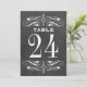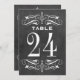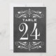 Les cartes de numéro de table mariage de style vintage sont ornées de tourbillons blancs décoratifs et fleurissent des deux côtés de la carte. L'Arrière - plan a un aspect rustique noir tableau noir texturé. Personnalisez chaque carte de numéro de table dont vous avez besoin et ajoutez-la individuellement à votre panier.