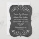 Des tourbillons décoratifs et des fioritures encadrent cette élégante faire-part de mariage de typographie vintage. Arrière - plan rustique noir tableau noir texturé avec texte et design blanc. Personnalisez le texte personnalisé pour votre cérémonie de mariage et réception.