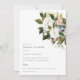 Elégante invitation à la douche nuptiale d'inspiration vintage. Caractéristiques, bouquet peint à l'huile de fleurs de jardin botanique et feuillage. Modèle moderne de style de design typographique avec coordination d'appui couleur jaune solide.
