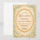 A charming vintage coastal design featuring delicate daisies, seashells, starfish, and soft seaside greenery arranged around an elegant ornate frame. The watercolor florals and warm antique parchment background create a timeless beach garden aesthetic inspired by classic botanical illustrations and coastal charm. Perfect for an elegant seaside celebration with soft floral romance.