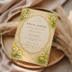 A delicate vintage wildflower design featuring soft daisies, yellow blossoms, and fresh greenery arranged around an elegant ornate frame. The watercolor florals and warm antique parchment background create a romantic countryside aesthetic inspired by classic botanical illustrations and charming cottage gardens. Perfect for a sweet, nature-inspired celebration with timeless floral elegance.