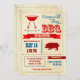 Invitation attirante de BBQ avec un regard vintage. Grand pour recueillir votre famille et amis dans le style pour un barbecue de Jour du Souvenir. Comporte de divers détails graphiques tels qu'un porc, un gril, des bannières, des flèches et différents styles des polices donnant à cette carte un appel antique. Ajoutez vos propres détails de partie.