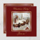 Invitation vintage du Père Noël Reindeer Sleigh, avec un Père Noël essayant d'entrer dans une maison à travers la cheminée et rennes avec son traîneau de cadeaux..