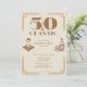 Celebrate turning fifty in true classic style with this vintage-themed birthday invitation. Set on a textured light-brown backdrop, the design features refined vintage corner borders and a striking layout with a distinguished gentleman graphic on one side and a whiskey bottle with glass on the other. The bold “50 & classic” headline in vintage lettering anchors the design, with editable party details displayed in a simple, modern sans serif font for effortless personalization. The full vintage-brown color palette ties it all together for a refined, masculine look.