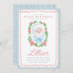 A vintage style Christmas invitation featuring a classic Santa illustration accented with soft blue gingham and delicate floral roses. The design blends nostalgic artwork with a sweet cottage style floral touch. Ideal for Christmas birthdays, children’s parties, and festive gatherings.